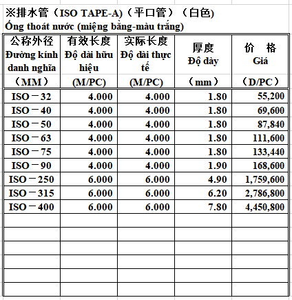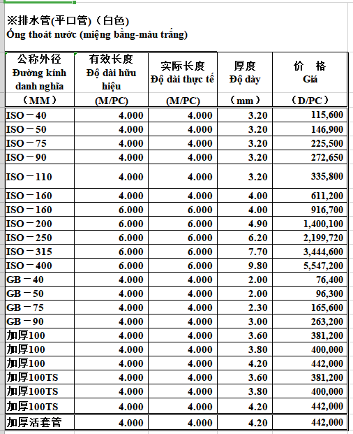 Sản phẩm Ống thoát nhựa PVC-U nhãn hiệu Nam Á (miệng bằng - màu trắng) là dòng sản phẩm chất lượng cao, bền bỉ rất được khách hàng ưa chuộng của Công ty TNHH ZHICHENG Việt Nam. Chúng tôi có thể đáp ứng bất cứ đơn hàng số lượng nào trong thời gian ngắn với chất lượng tốt hàng đầu.